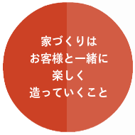 私たちと同じ幸福感を味わって欲しいと、何回も何回も打ち合わせをしながら、大満足の家を建てさせて頂いております。 そして、現場が始まれば、いつも明るく楽しく生きがいを持って家をつくり、多くのお客様にささえられていることに感謝し、幸せな空間を造ることが使命です。
